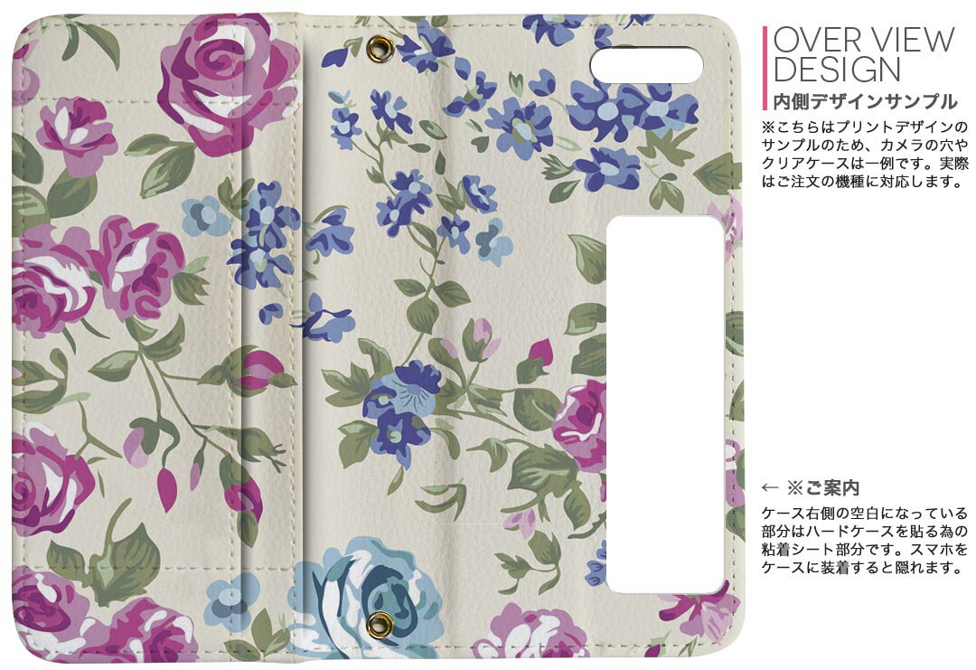 手帳型 docomo softbank au 全機種対応 あり 両面プリント 裏表 内側 内面 スマホ カバー レザー ケース 手帳タイプ フリップ ダイアリー 二つ折り 革 フルデザイン 004757 花 ピンク 青